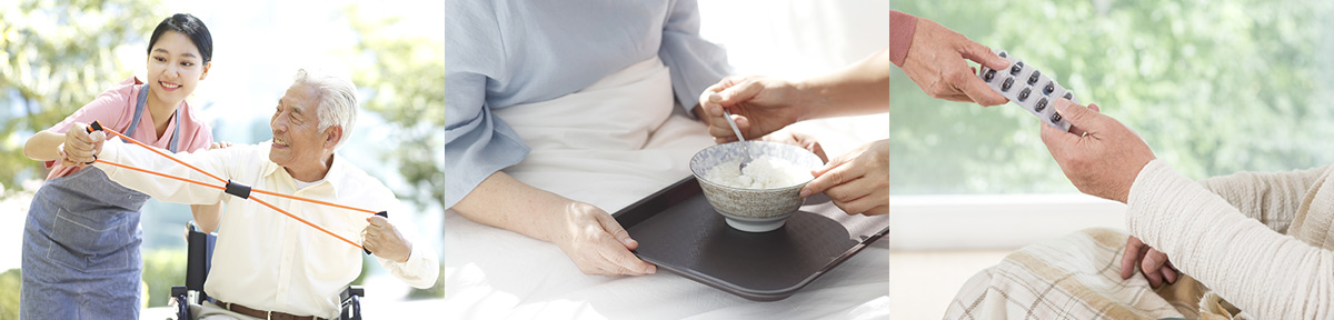 | 신체기능의 유지ㆍ증진 | 관절오그라듦 예방활동, 보행 및 서있기 연습 보조, 기구사용운동보조, 보장구 이용 도움, 복약도움 | ||||